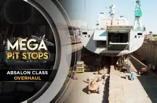 The most modern warship in the Danish Navy the HDMS Absalon needs a major overhaul. Every 5 years, the warship is docked, and checked to the bones. This happens in Orskov Yard in Frederikshavn, North Denmark. The flexible support ship is 137 meters long and equipped with highprecision weapon systems: From torpedoes to machine guns to antimissile weapons. Thanks to its smooth and angled outer skin, the Absalon reflects only a fraction of radar radiation, making her extremely difficult to detect. The tracking systems of the warship itself, on the other hand, are highly sensitive. Space for two helicopters, two separate engines, bulletproof steel and the most sophisticated technology – all of this is due to be inspected. The most complex of all the processes: Checking the marine shaft device. Which, in effect, means cutting a hole in the ship to remove the rudder and propellers. The bow thruster is removed and maintained, as well as the sonar – a top secret mission. And then there are the upgrades: The technicians install a brand new UV filter system for cleaning the ballast water painters give the entire ship a new look. All of this happens under extreme time pressure: the team has only 5 weeks. But unexpected problems, as well as the special construction of the highlyequippen vessel pushes the engineers to their limits. In this MEGA PIT STOP.